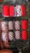 Celebrate the holidays with this festive candy cane nail set. Features red, green, and white designs.