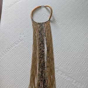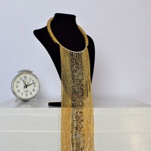 Elevate your style with this luxurious gold fringe necklace. Perfect for adding a touch of glamour to any ensemble.