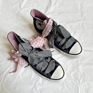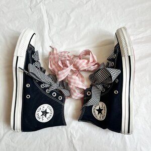 NEW Converse Women Shoes 8.5 Casual Black with Barbie PINK High Top Sneakers