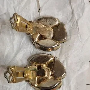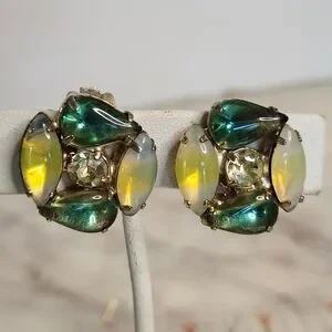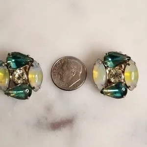 Rare 60's Schreiner Opaline Glass Clip-On Earrings Rhinestone Middle Stone 🔥