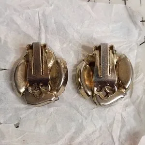 Add a vintage touch to your look with these elegant green and yellow clip-on earrings. Perfect for any occasion.