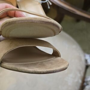 Step out in style with these elegant tan block heel sandals. Perfect for any occasion, these shoes offer both comfort and sophistication.