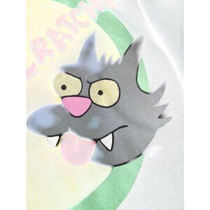 This hoodie features a bold Itchy & Scratchy Show graphic, drawing from the iconic Simpsons series. Made from a cotton and polyester blend, it offers a comfortable fit, ideal for casual outings or relaxed days. A vintage piece in good condition with no defects. Length 27", shoulders 25", pits 23.5", waist 23.5", hem 21", sleeve length 21". SKU 8903