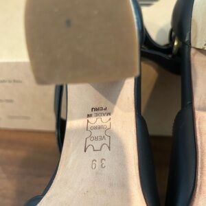 Gorgeous leather black heels with elegant cutout design. Features a stylish gold buckle. Perfect for elevating any outfit. Gently worn. 4” heels.