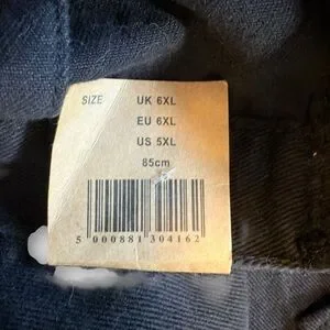 Brand new with tags. Size is 5XL. See pictures for all measurements. Black in colour. No fading, just trouble with my camera showing black properly.
