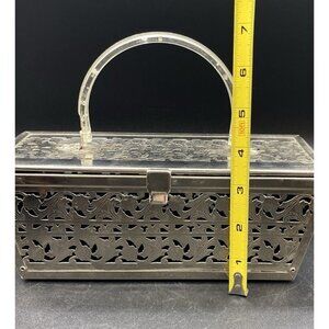 Rectangle Silver Tone Pierced Metal With Lucite Handle MCM Vintage