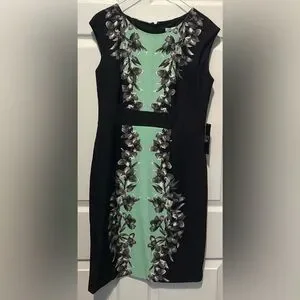New York & Company Black and Green Floral Midi Dress