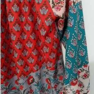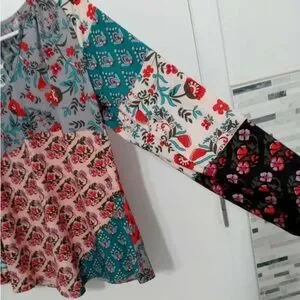 Vibrant floral block print blouse with elastic at cuffs