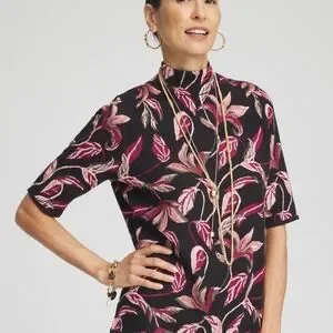 Chico's turtleneck sweater with vibrant floral design. Black base with pink accents. Chico's size 0