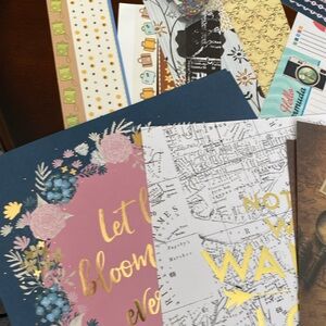 Selling some odds and ends of my scrapbook collection that I’m quite certain I will not use. In here are some 12 x 12 sheets, some of them have foil details. For travel, I have scraps of Japan and Bermuda. There is also a pack of random rainbow, glitter letters. I had lots of fun doing scrapbook pages with those. There is also an embossing folder that didn’t work out for me. Bundle with another item to make use of my closet discount!