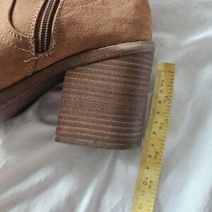 Step out in style with these chic tan suede ankle boots. Perfect for any occasion, they offer both comfort and elegance.