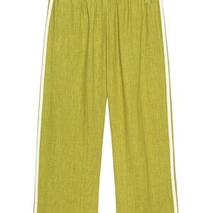 Donni. best-selling silhouette, reimagined in signature lightweight linen. Designed with a cropped fit, comfortable elastic waistband, straight-leg cut, and finished with racer stripes along each leg. Worn a few times.
