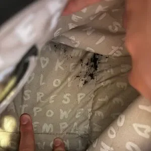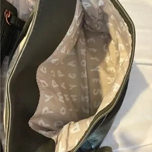 Used but in very good condition. Has a spot of ink on inside (see photo). It also only has one strap.