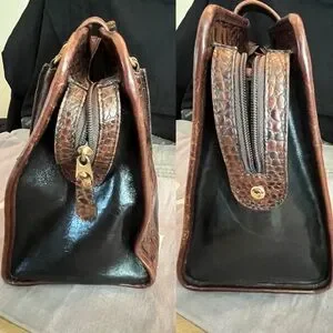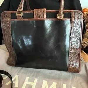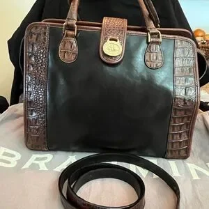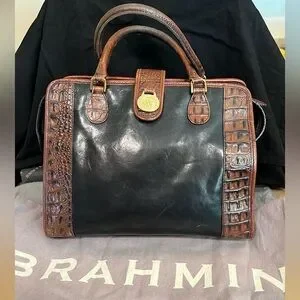 Brahmin vintage leather handbag. Has one small mark on front bottom see photos. Bag is 11.5”tall, 9” wide, base is 5.5”. Spacious!! Includes 45” detachable shoulder strap and original cloth storage bag! Brahmin-timeless style!