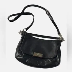 Coach black leather messenger crossbody bag shoulder