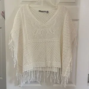 White Fringe short Poncho