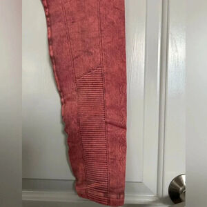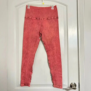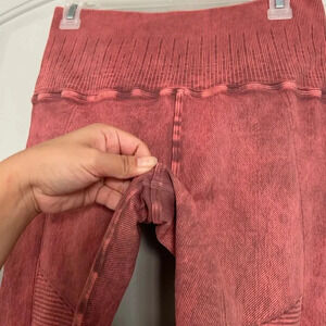 avocado Vintage Phoenix Fire Leggings Vintage Red Rock. Signature patented waistband. High rise waist with tummy-control enhancement. Double reinforced seams. Multi textured ribbing, yoke detail slims hips & frames your back assets. Active compression. Each piece is hand dyed & uniquely different. Yoga workout titness.