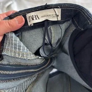 ZARA ZW BUSTIER WITH CONTRAST TOPSTITCHING MID-BLUE.