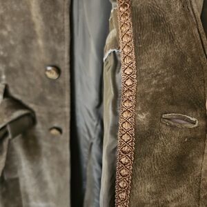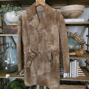 There’s nothing better than adding a little piece of history to your wardrobe. This incredible vintage trench-style coat is handmade of genuine buckskin suede in its natural, undyed shade with beautiful tonal variation throughout.