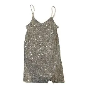 Sparkle in this stunning silver sequin mini dress. Perfect for a festive night. Kids size 8/medium