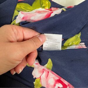 Beautiful silk romper by equipment femme. Features floral design on navy blue background. Great preowned condition other than on tiny mark near button as shown. Lying flat armpit to armpit approx 18.5” across and top of shoulder to bottom hem approx 31” and inseam approx 2”. All measurements are approximate