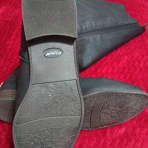 Chic black leather boots. Ideal for winter wear. Comfortable and durable.