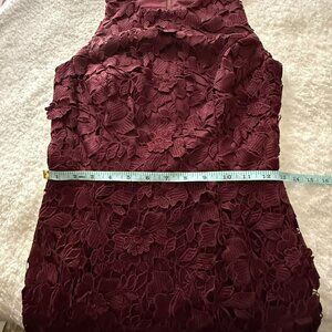 Betsy & Adam Burgundy Floral Lace Midi Dress Size 4 Sleeveless Fitted Design 1