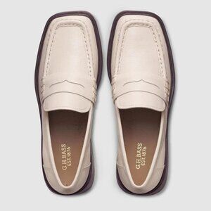 "NEW" Super Cute Creamy White & Brown Textured Leather Bowery Square Toe Loafer By G.H.Bass. Slip on Style, Leather Upper, Lining & Cushioned Foot Bed with Arch Support, Penny Loafer Style, Rubber 1" Platform & 1.5" Heel / Soles, New, Never Worn, Only Tried On:) Rt.185.00 approx. Size 7.5, Foot Bed Measures 9.5" for Reference. * These are your New Fall Shoes!