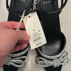 A New Day Black and Silver Slingback Heels with Rhinestone Bow