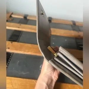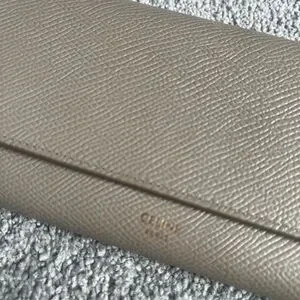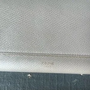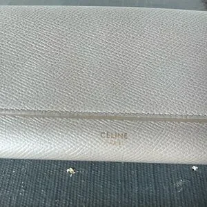Classic authentic Celine long grey wallet. I used this for a month and it’s just been in my closet. Excellent used condition. A few cracks in the glazing as shown, an imprint on the inside from the zipper. 7/10 condition.