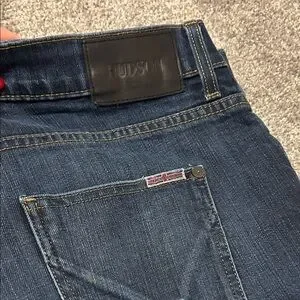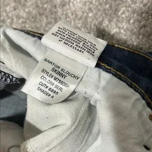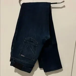 “Slouchy Skinny” relaxed fit for ultimate comfort. Deep indigo color. Size 33. Button up jeans perfect for casual wear.