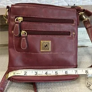 Chic and versatile small crossbody bag. Rich wine color with gold accents.