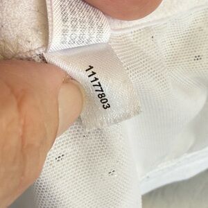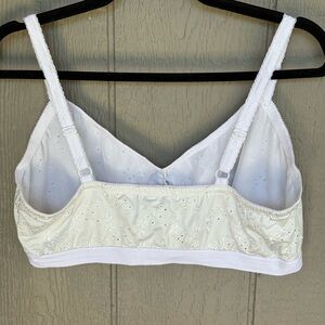 This is a white Torrid embroidered bralette. It’s a size 2xl. It has adjustable straps. I only wore it a couple of times and washed it according to the instructions. There are some fuzzies on the inside. It’s in excellent condition.