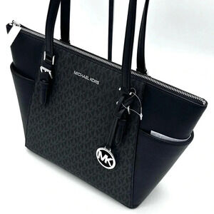 Michael Kors Large Charlotte Tote Bag Black/Silver (NWT)