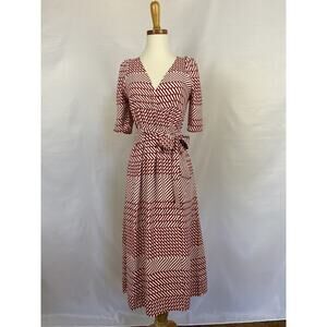 Joie Size 2 Cata Red Striped Midi Wrap Dress Art Deco Boho Festival