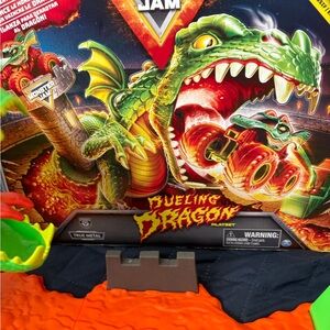 Monster Jam presents Dueling Dragon playset, and Dragonoid stunt dial set.