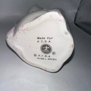 Vintage Bunny Rabbit Bud Vase 1980 FTDA Weiss Ceramics Brazil 7.5” Purple Flower