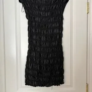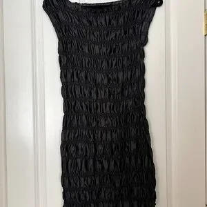 Chic black mini dress with ruched detailing. Perfect for stylish outings.