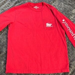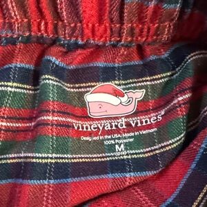 Bright red top with logo detail. Cozy plaid pants for a snug fit. Perfect for bedtime comfort. Used good- fair condition Size medium