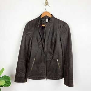 Genuine Leather Brown Moto Style Zip Up Mock Neck Jacket Sz M