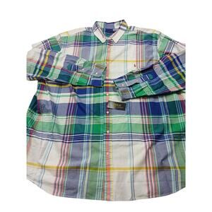 Ralph Lauren Men Button Down Shirt 4XLT Big Tall Blue Green Plaid Flesh Pony NEW