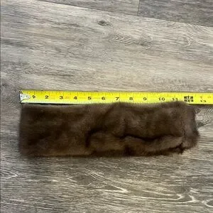 Brown Neiman Marcus mink headband with Velcro closure at back.