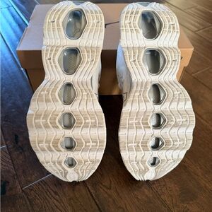Great supportive running shoe. Sleek white Mizuno running shoes. Innovative sole design for comfort. Worn one time. Practically brand new.