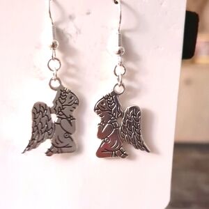 Elegant handmade earrings featuring a charming angel design in silver. Perfect for adding a touch of grace to any outfit.
