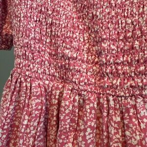 Abercrombie and Fitch pink and white floral dress. Size medium. Worn once and in amazing condition. Puff sleeves. Gathered bodice. Ruffle at neck line. Tie front. Pictures don’t do it justice. Perfect to dress up or down.
