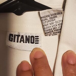 Vintage Gitano White Cotton Jacket Blouse Frayed Neck Pockets Sz M
