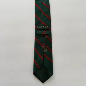 Vintage Lauren Ralph Lauren Green Red Striped Silk Tie Crest Design 100% Silk