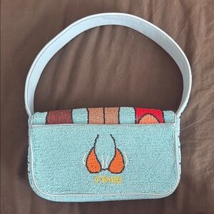 Beaded Women's Shoulder Bag in Light Blue