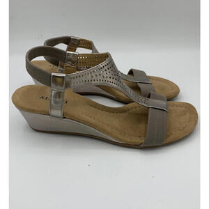 Alfani Rose Gold Sandals Ankle Strap 1” Heel Wedge Open Toe Size 5.5 Metallic
