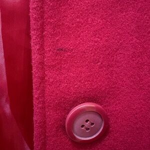 Elevate your style with this chic red trench coat. Perfect for adding a bold touch to any outfit. It’s a coat that is made of partial wool just like a long pea coat. Buttons are in excellent condition. There is a small black stain near one of the buttons as seen in the picture (have never tried to treat the stain.) Add this stylish light coat to your wardrobe for this fall and winter!! Make me an offer!!